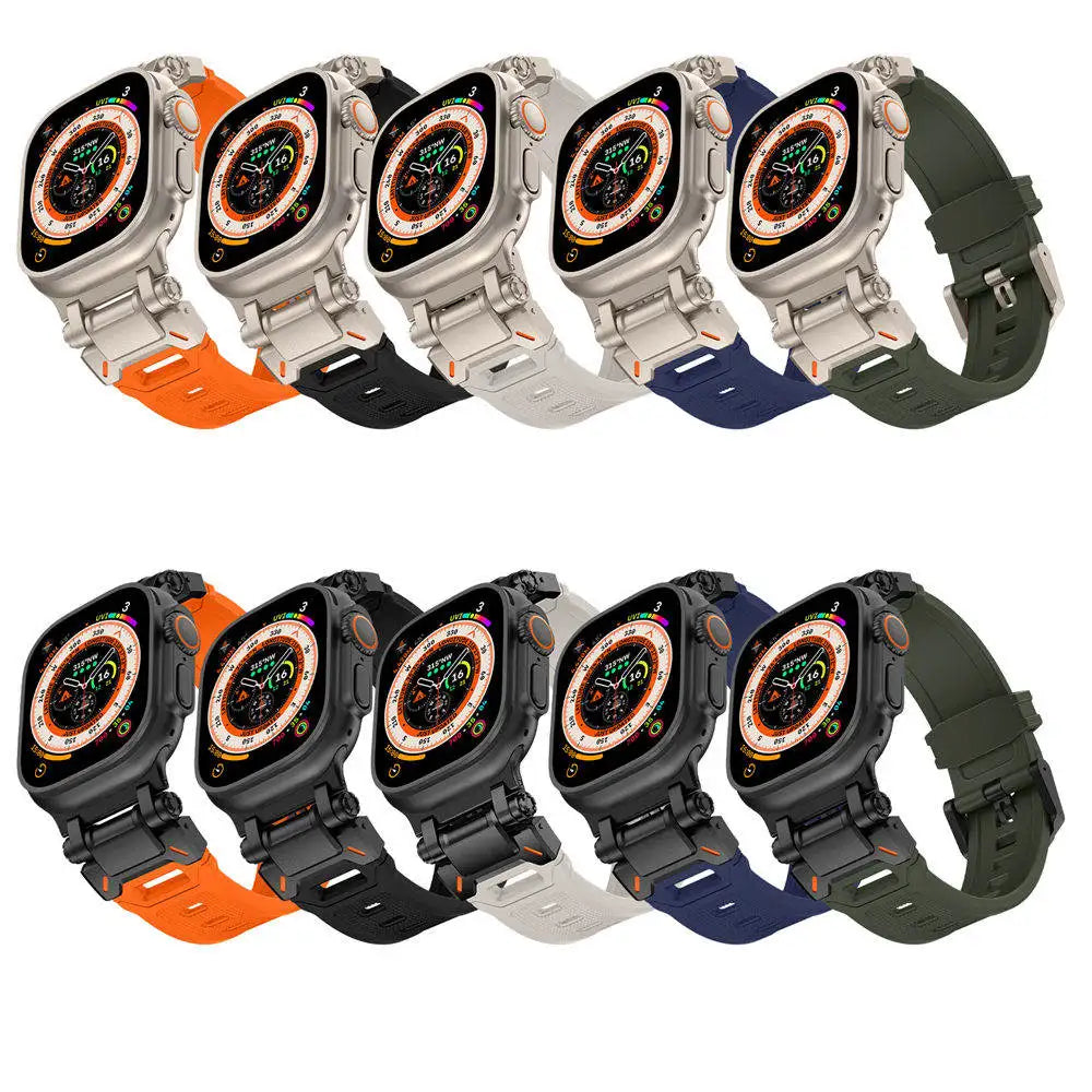 Premium Silicone Stainless Steel Buckle Band Strap Bracelet for Apple Watch Ultra Series 9 8 7 6 5 4 SE