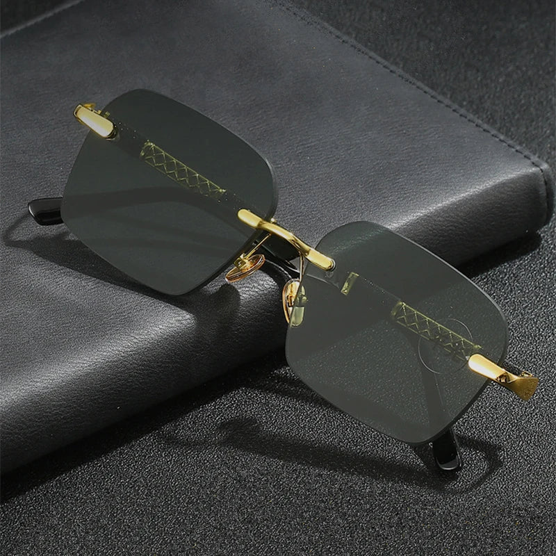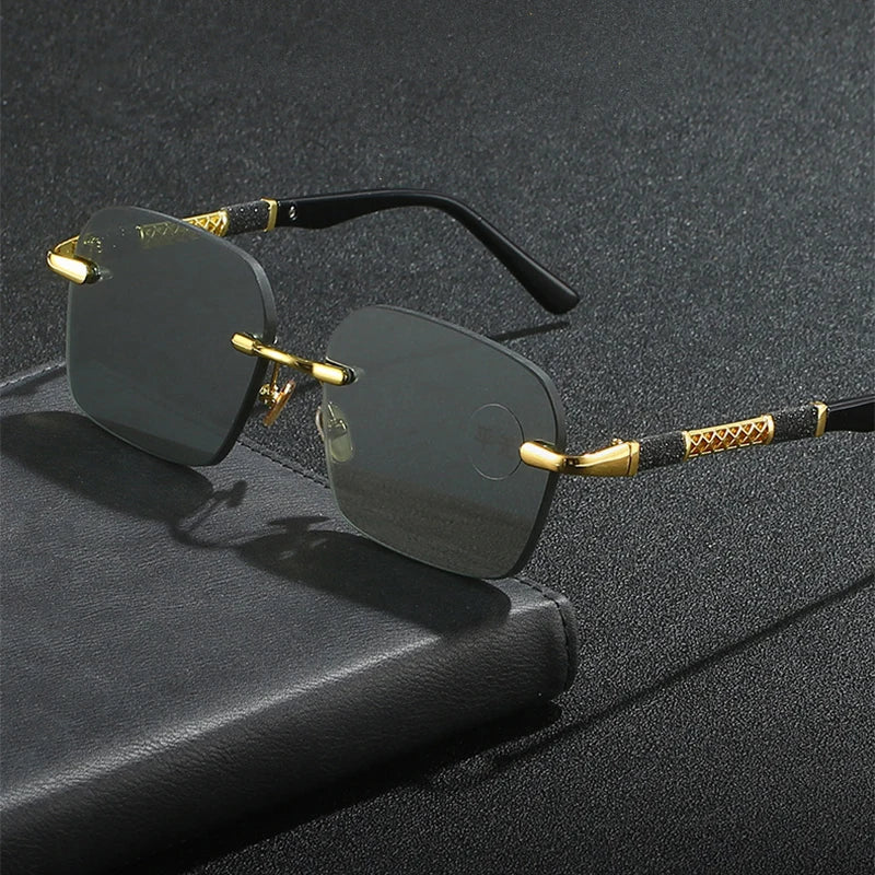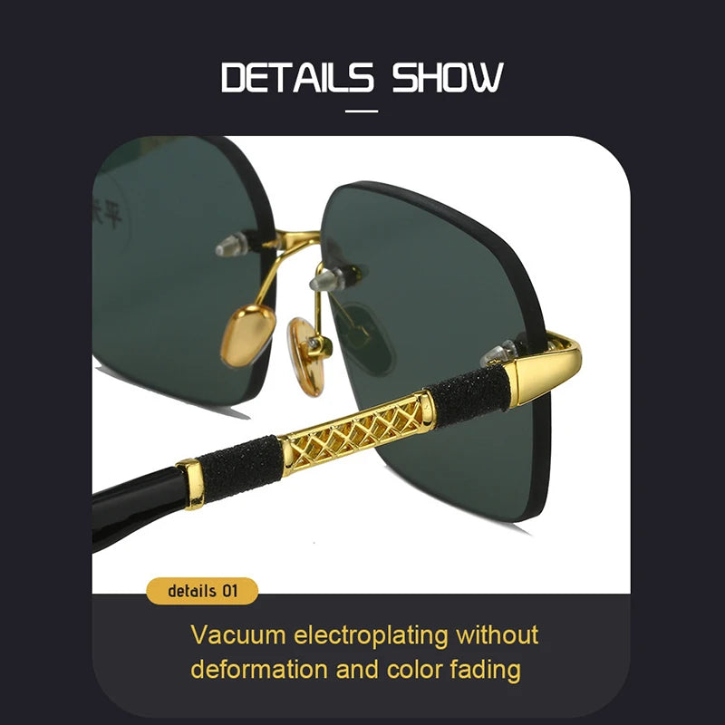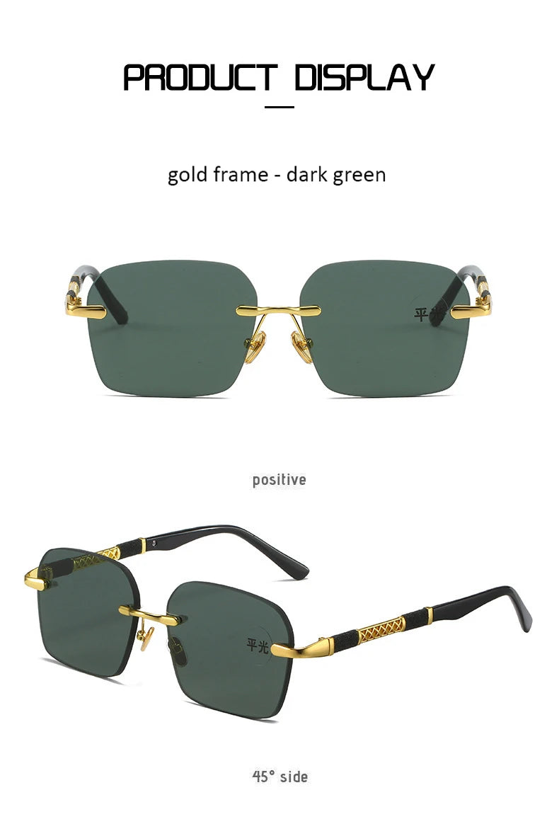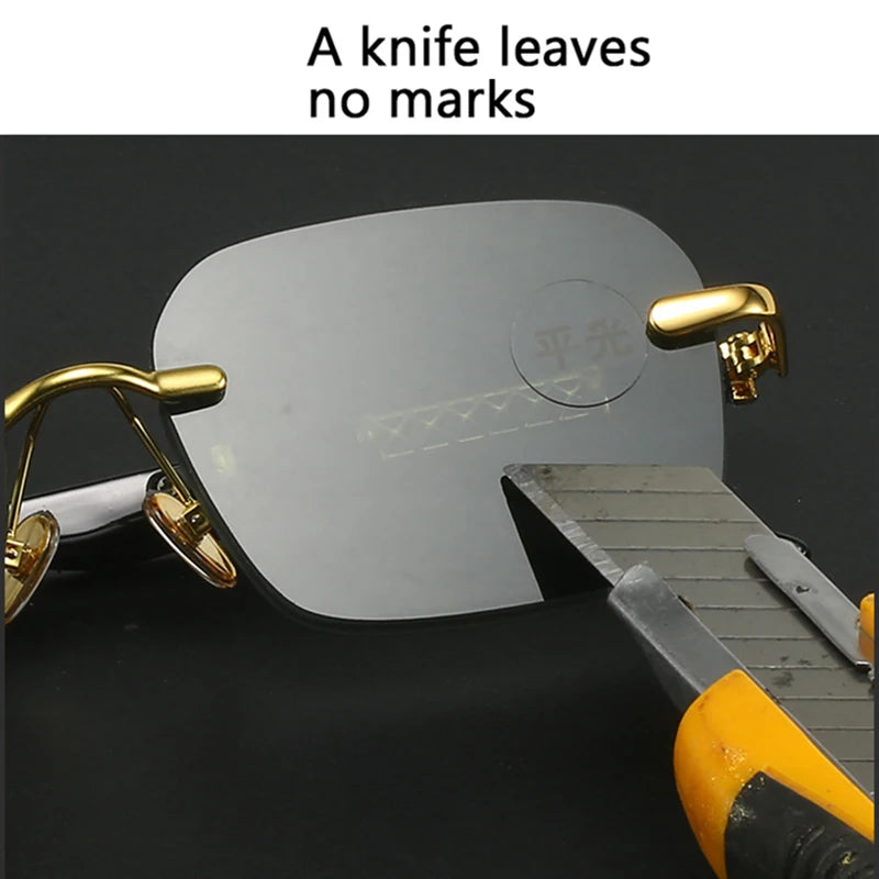 Crystal Stone Sunglasses Man Business Rimless Glass Sun Glasses Woman Polygon Mineral Lens Vintage Anti Scratch Driver's Shade